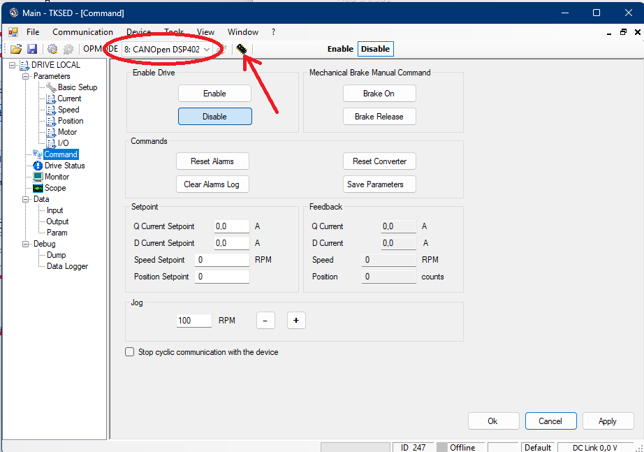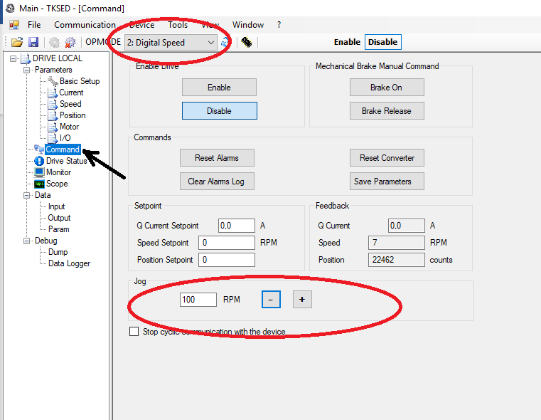 Go to Command window, select the Digital Speed as OPMODE. Click on Enable the drive, then use + and - button to move the motor forward and bacward.