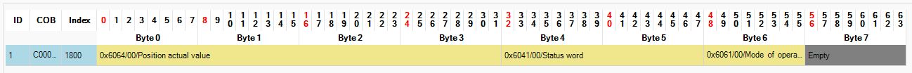 | 1 | PositionActualValue | DINT | 0x6064 | 0x60640020 |