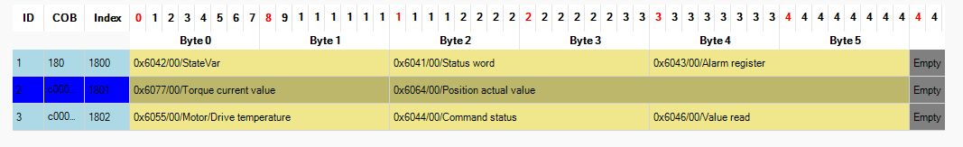 This implementation comprising 3 TXPDO and 3 RXPDO. EDS File: :integrated_drive_motors:nli_integrated_motor_extended.zip