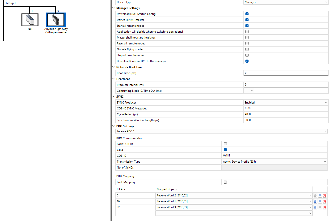 The NLi motor must be updated with the Extended PDO Firmware. Please contact NiLAB for the right firmware.
