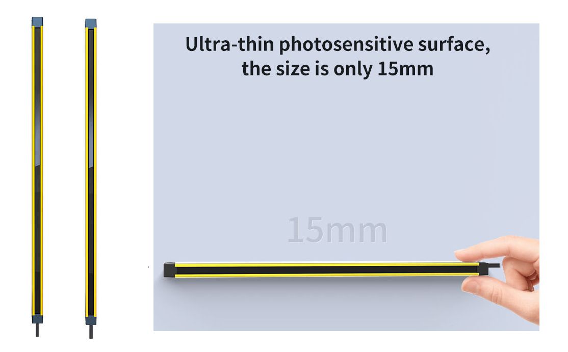 EB15 safety light curtain has a unique structure - emitting light surface is 15mm compact size, light is emitted from side. Multiple output signal, easy installation and cable connection. Meanwhile, quick response time to ensure reliable performance.