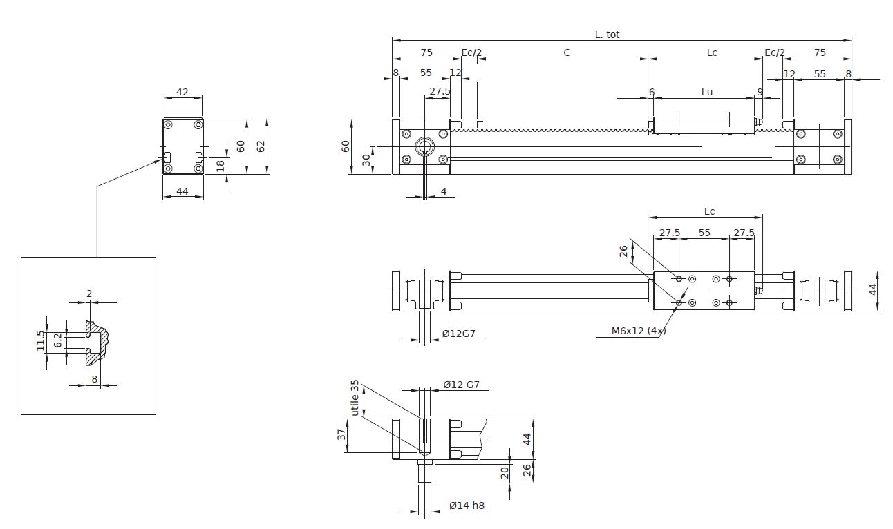 Carriage usable lengthLu110mm